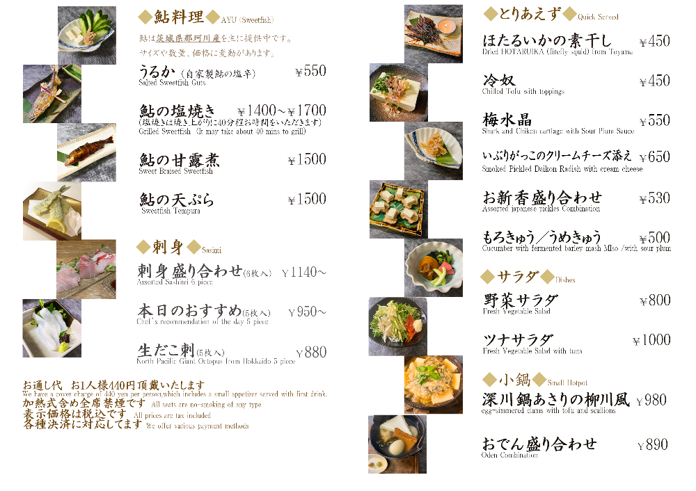 【鮎づくしコース7700円】 一品 うるか(鮎の塩辛)焼物 鮎の塩焼き煮物 鮎の甘露煮一品 鮎の骨酒揚物 鮎の天ぷら 〆め 鮎ごはん 鮎のつみれ椀 香の物